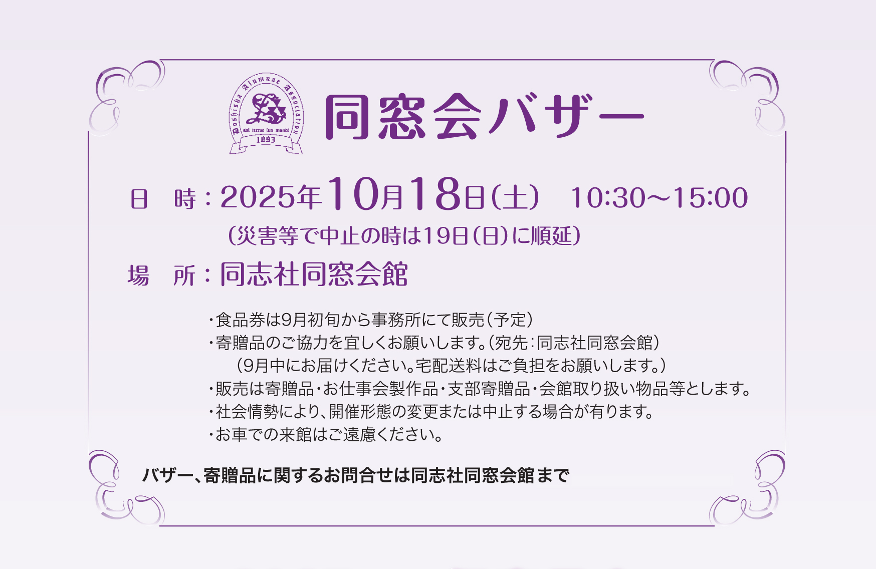 2025年 同志社同窓会バザーのご案内