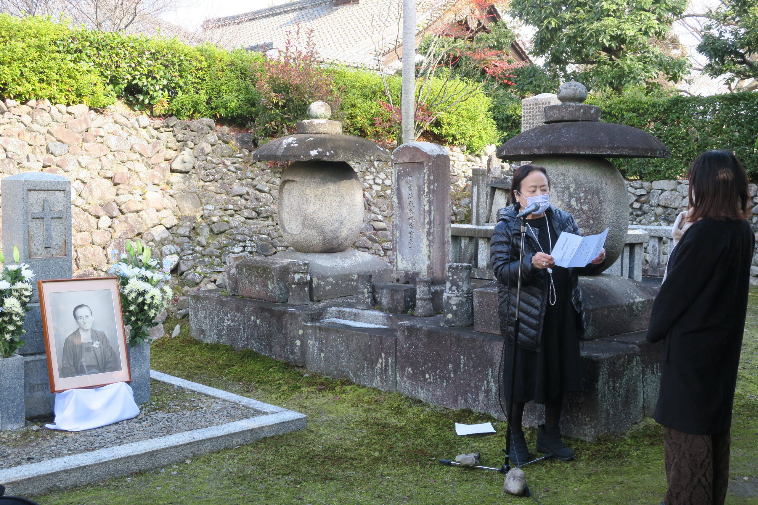 2023年度同志社同窓会「ミス・デントン永眠記念墓前礼拝」が、12月22日午前11時より相国寺長得院で、八田総長・理事長をはじめとするご来賓をお迎えして、64名が参列し執り行われました。讃美歌536番「むくいをのぞまで」。
