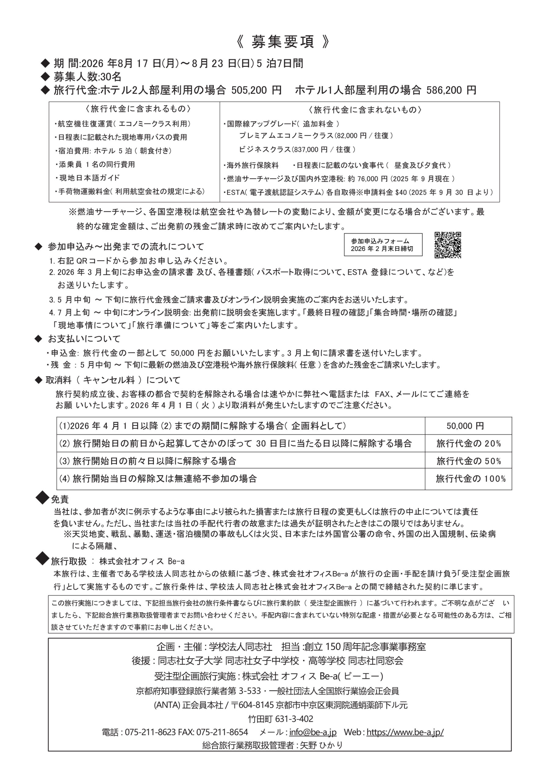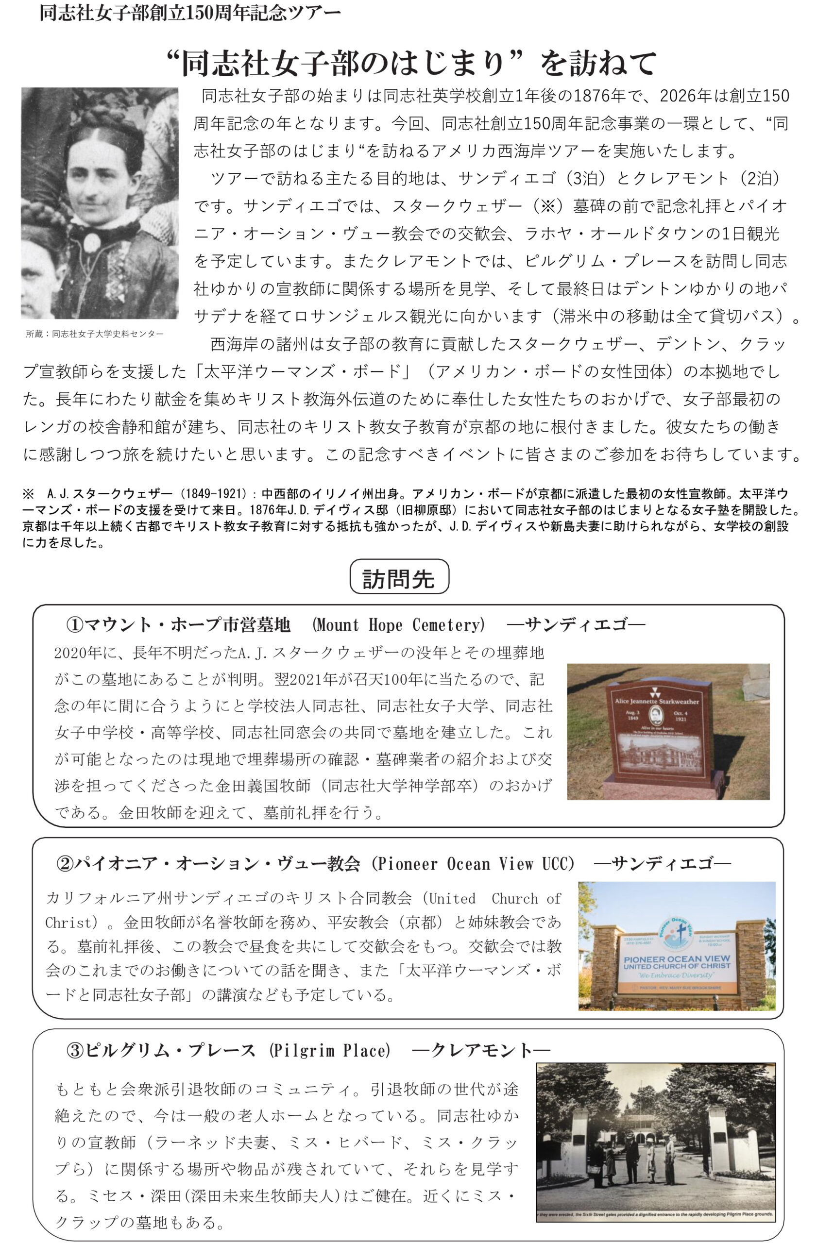 同志社女子部創立150周年記念ツアーのご案内
