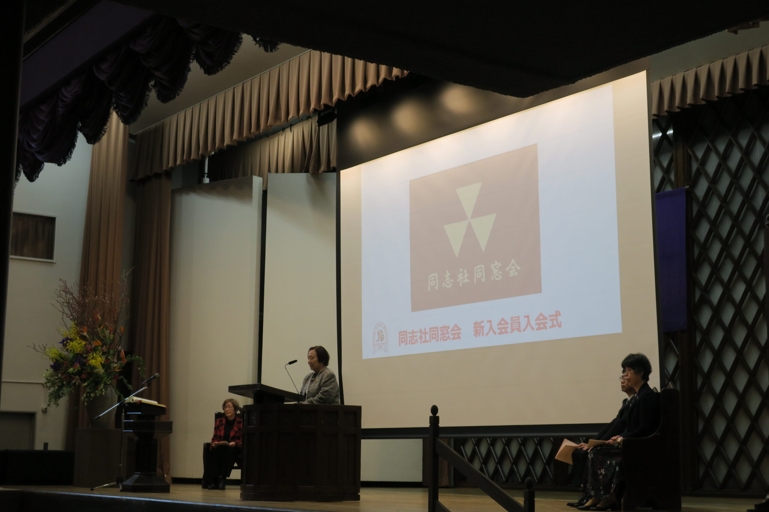 同志社同窓会南野会長が歓迎の言葉を贈り、同志社女子大学川崎清史学長にご挨拶をいただきました。