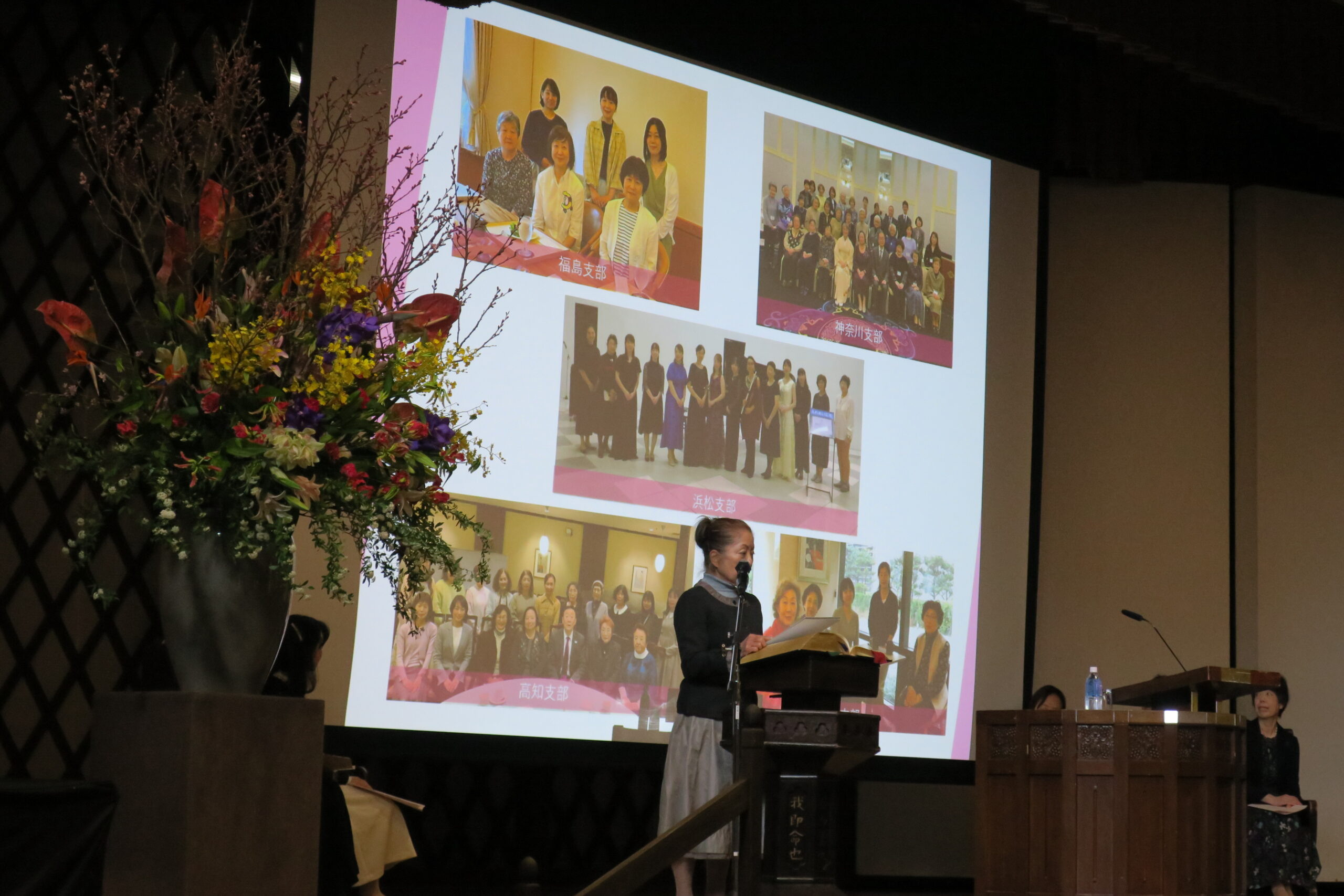 吉田評議員よりパワーポイントによる同窓会活動・事業内容の説明があり、「同窓会のエンブレム・栄光館の瞑想室のステンドグラスの図柄の2冊の一筆箋」と「同志社同窓会のことを記した冊子」を記念品として贈呈しました。